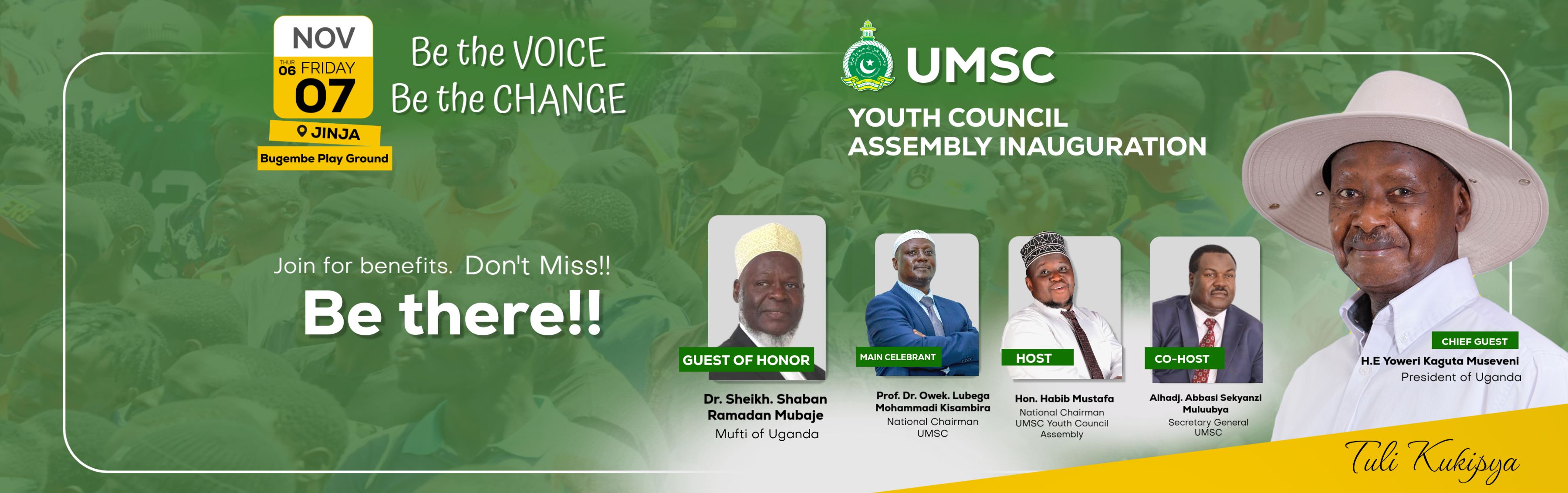 UMSC Youth Council Assembly is a statutory body established under article (2), clause (5), (g & h) of the Constitution of Uganda Muslim Supreme Council (As Amended 2022) as an Umbrella body of all Muslim Youth in Uganda between the ages of 18-30 years and it is mandated to further the interest of the youth to the General Assembly, organize, mobilize and engage Muslim Youth in development activities. We have structures from 15,500 Juma Mosques, 788 Muslim Counties, 78 Muslim Districts, and 10 Muslim Regions to UMSC National Youth Council Assembly.
